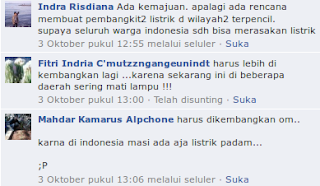 Menurut saya, sampai saat ini PLN sudah bekerja secara maksimal. Semuanya bisa kita rasakan sampai detik ini. Belum lagi inovasi dan usaha peningkatan kuwalitas yang dilakukan. Namun ada yang sedikit mengganjal. Yaitu sosialisai.